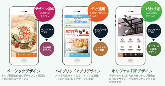飲食店、エステ、美容院、コーポレイト、ECサイト、学校、病院、ホテル、旅行社、工務店、アーティスト、アスリート、個人、上場企業などのIRアプリ、企業のリクルートアプリ、会員だけに提供する会員アプリ、社内だけで利用する非公開アプリなどどんな業種・用途にも適用できます。デザインやメニュー名なども自由に変更可能です。